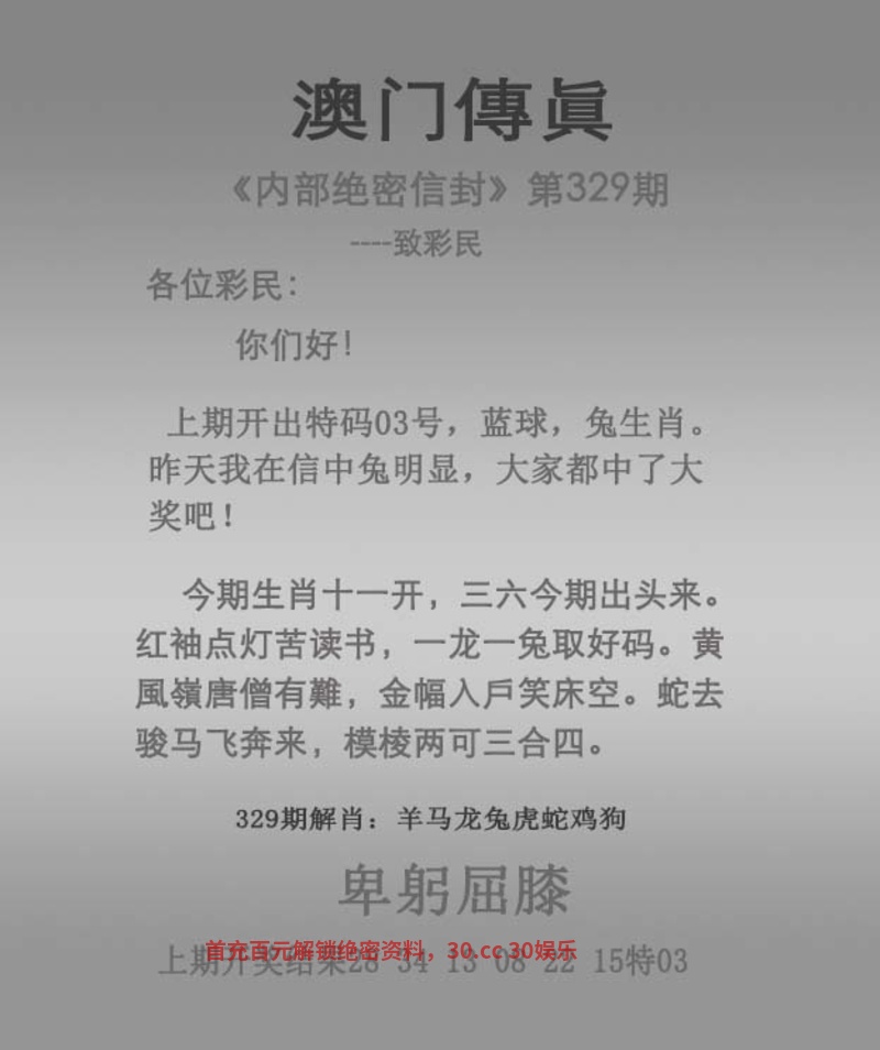 330期【马会传真】开马36准 今期生肖四四开,六蛇马来开特码 绿地之上有码开,儿孙满堂老人欢 期中夕二起相思,约法三章定律寅 马上三下中间二,要开红绿也不难 解:今期六蛇马来开特码,解阴肖鼠龙蛇马狗猪,绿地之上有码开,解绿肖羊龙牛狗 综合:兔龙羊鸡虎蛇牛马鼠 |